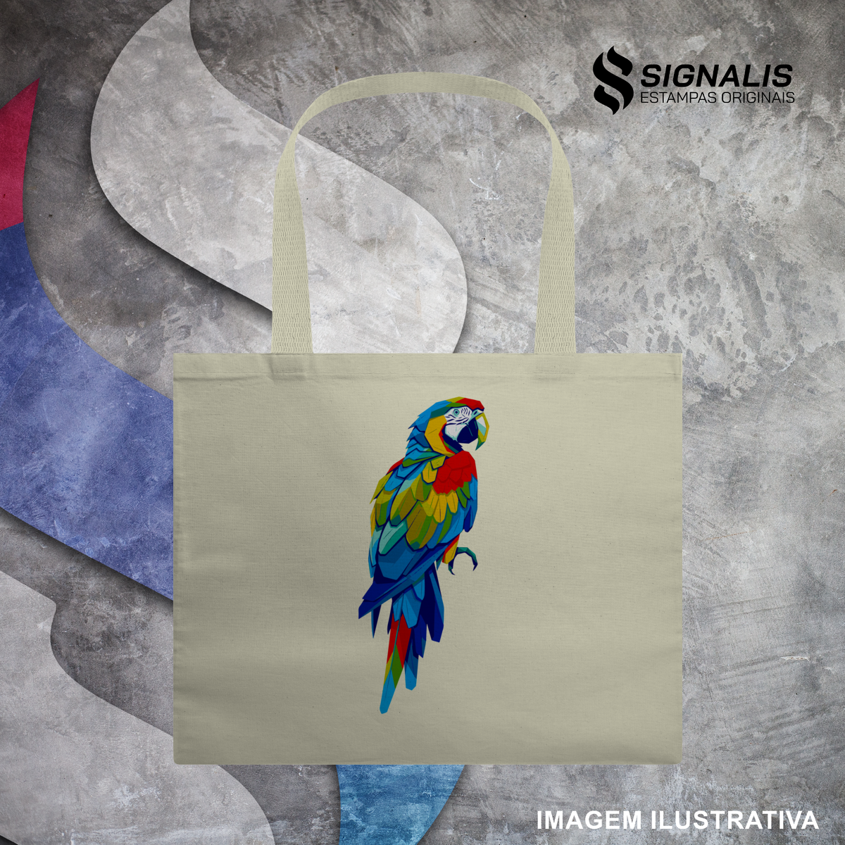 Esta Ecobag da Signalis é um acessório de estilo e consciência ecológica. O design da Arara, em cores vibrantes e formato geométrico, celebra a fauna brasileira com energia e personalidade.